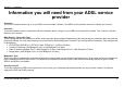 Section 2 – Installation Information you will need from your ADSL service provider Username This is the Username used to log on to your ADSL service provider’s network. Your ADSL service provider uses this to identify your account. Password This is the Password used, in conjunction with the Username above, to log on to your ADSL service provider’s network. This is used to verify the identity of your account.