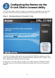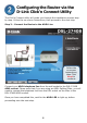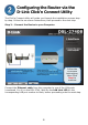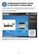 Configuring the Router via the D-Link Click’n Connect Utility Insert the CD-ROM into your PCs CD Drive. The Click’n Connect utility should appear automatically. If it does not appear, explore your CD-ROM drive within Windows, and double-click on the file “dslutility.exe” to start the utility manually. You can select one of five options: 1. 2. 3. 4. 5. View Manual: This option will open up the DSL-2740B user manual. You will need Adobe Acrobat Reader installed to view the manual.