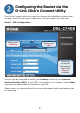 Configuring the Router via the D-Link Click’n Connect Utility The Click’n Connect utility will guide you through the installation process stepby-step. Follow the on-screen instructions, then proceed to the next step. Step 9 – Setup Complete Click Exit to close the Click’n Connect Utility If you have arrived at this screen, this means that your Internet connection has been successfully established and all the details that you have entered are correct.