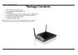 Section 1 - Product Overview Package Contents • • • • • • • DSL-2750B Wireless ADSL Router 2 non-detachable Antennas(MIMO 2x2) Power Adapter CD-ROM with Installation Wizard, User Manual, and Special Offers One twisted-pair telephone cable used for ADSL connection One straight-through Ethernet cable One Quick Installation Guide Note: Using a power supply with a different voltage rating than the one included With the DSL-2750B will cause damage and void the warranty for this product.