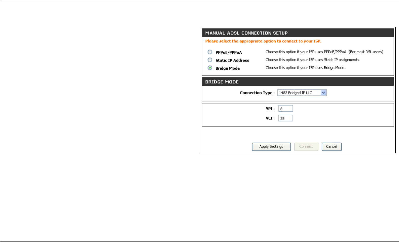 Bridged IP LLC and 1483 Bridged IP VC-Mux. If you have not