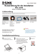 Kurzanleitung für die Installation DSL-321B ADSL2+ ETHERNET MODEM Lieferumfang Sollte eines dieser Teile fehlen, wenden Sie sich bitte an Ihren Fachhändler. DSL-321B ADSL2+ ETHERNET MODEM CD-ROM (Click'n Connect von D-Link, Handbuch und Garantiekarte) Ethernet-Kabel (CAT5 UTP) Netzteil RJ-11 Kabel Hinweis : Die Verwendung eines Netzteils mit abweichender Spannung führt zur Beschädigung des Geräts und zum Erlöschen der Garantie. Standard-IP-Adresse:192.168.1.