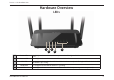 Section 1 - Product Overview Hardware Overview LEDs 1 3 2 1 Power LED Internet LED 3 WPS LED 4 WLAN LED 5 LAN LEDs 1-4 D-Link DIR-842 User Manual 5 4 A solid light indicates that the device is powered on. The light will blink while the device is in recovery mode. A solid light indicates that an Internet link is established. A solid light indicates that the WPS handshake has been completed. The light will blink while the WPS handshake is processing.