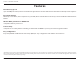Appendix C - Technical Specifications Features • SharePort Plus • SharePort Mobile • Web File Access Support • Mydlink Cloud Management Service • QRS Mobile • SAMBA Support • Media Server support • IPv6 support Advanced Features • VPN pass through • Guest Zone Support • UPnP™ Support • Wi-Fi WMM Quality of Service Dimensions • 1.26” x 6.57”x 9.45” (32mm x 167mm x 240mm) • With stand: 2.76” x 6.57 x 9.92” (70mm x 167mm x 252mm) Weight • 1.07 lb ( 481.