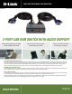 Control two computers using one monitor, USB keyboard, and USB mouse with D-Link’s 2-Port USB KVM Switch with Audio Support (KVM-221). The KVM-221