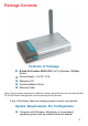 Package Contents Contents of Package: D-Link Air Premier AG DI-784 11a/11g Wireless 108Mbps Router Power Adapter – 5V DC, 3.0A Manual on CD Quick Installation Guide Ethernet Cable Note: Using a power supply with a different voltage rating than the one included with the DI-784 will cause damage and void the warranty for this product. If any of the above items are missing, please contact your reseller.