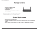 Section 1 - Product Overview Product PackageOverview Contents • D-Link DIR-615 Wireless Router • 2 Detachable Antennas • Power Adapter • CAT5 Ethernet Cable • CD-ROM with Installation Wizard, User Manual, and Special Offers Note: Using a power supply with a different voltage rating than the one included with the DIR-615 will cause damage and void the warranty for this product.