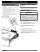 Installation Instructions Re-installing the Drawer 1. Pull the drawer slides all the way out of the drawer opening. 2. Gently lower the drawer between the extended slides until it is suspended by them. 3. Slide the back of the drawer mounting brackets under the drawer mounting clips on the slides. 4. Push one side of the drawer down onto its locking tab, until the tab locks into place. 5. Repeat the same process on the opposite side. 6.