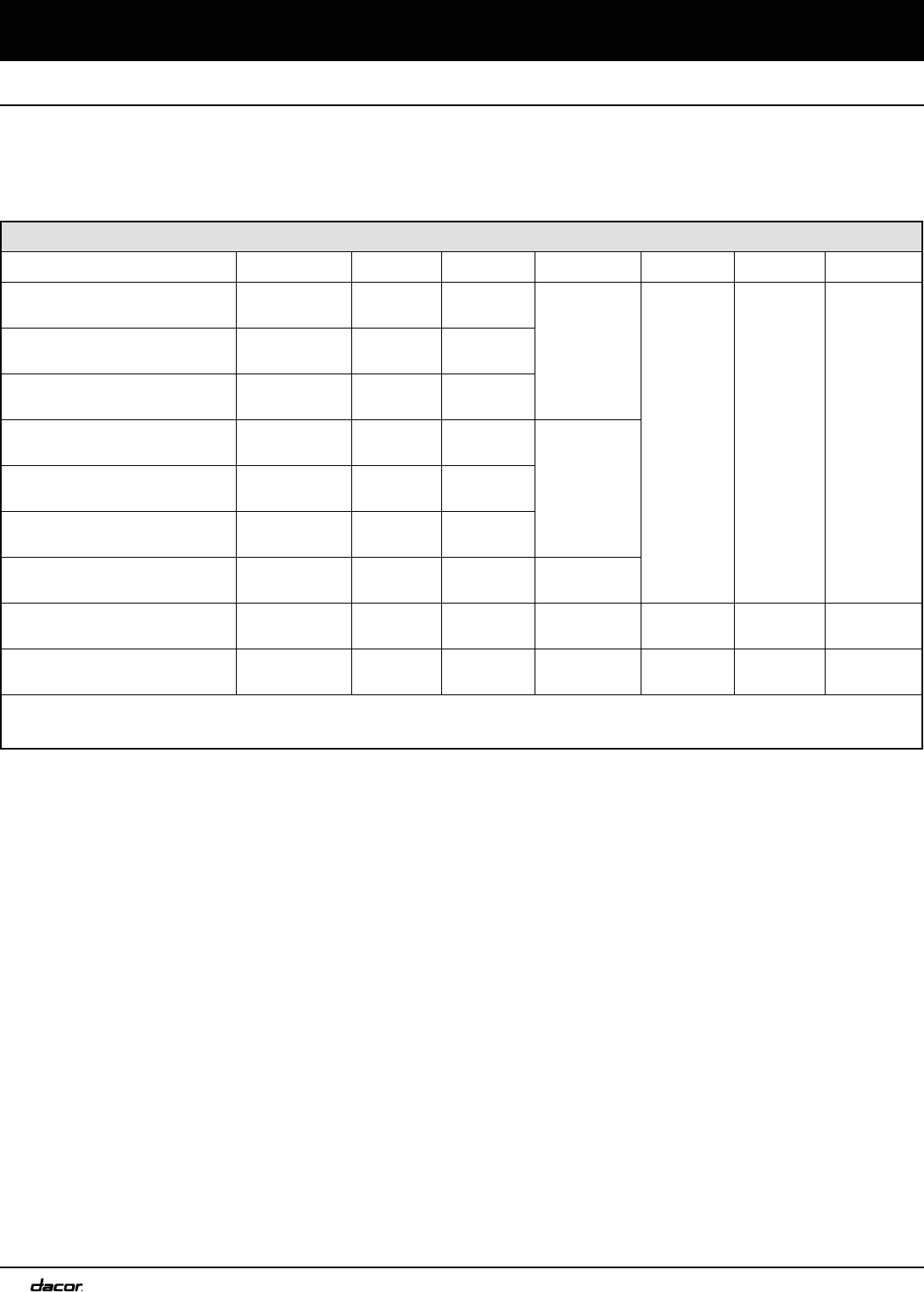 Use the table below to determine the countertop cutout type and dimensions for the installation.
