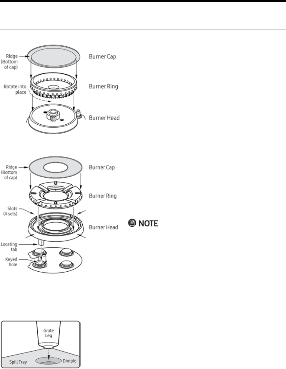 The grates are identical, so you can place them in the left, center, or right position but always with the short