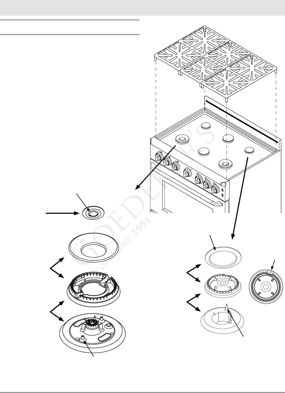 the burner cap. All burner parts must be properly