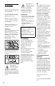 Table of Contents WARNING . . . . . . . . . . . . . . . . . . . . . . . . . . . . . . . . . . . . . . . . . . . . . . . . . . . . 2 Precautions . . . . . . . . . . . . . . . . . . . . . . . . . . . . . . . . . . . . . . . . . . . . . . . . . . . 3 Guide to Parts and Controls . . . . . . . . . . . . . . . . . . . . . . . . . . . . . . . . . . . . . . 8 Hookups and Settings Hooking Up the Player . . . . . . . . . . . . . . . . . . . . . . . . . . . . . . . . . . . . . . . . .