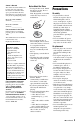 Owner’s Record The model and serial numbers are located at the rear of the unit. Record the serial number in the space provided below. Refer to them whenever you call upon your Sony dealer regarding this product. Notes About the Discs • To keep the disc clean, handle the disc by its edge. Do not touch the surface. Dust, fingerprints, or scratches on the disc may cause it to malfunction. Model No. BDP-S1000ES Serial No.______________ Model No. USM4GL Serial No.