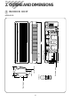 2. OUTLINE AND DIMENSIONS 1 INDOOR UNIT ◆DSA-095L 750 Connecting Pipe Plate Mounting MODE FAN SPEED ENTER/ CANCEL TIMER ON/OFF SLEEP REMOTE CONTROLLER FAN DIR.