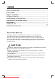 CONTENTS SAFETY PRECAUTIONS ....................................................................................... 1 PARTS NAMES ..................................................................................................... 4 MANUAL OPERATION ......................................................................................... 5 OPTIMAL OPERATION ........................................................................................ 5 ADJUSTING AIR FLOW DIRECTION................................