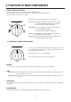 4. FUNCTION OF MAIN COMPONENTS 1. ROTARY SWITCH (SELECTOR) Please refer to the part of selector in the chapter 9 (Wiring Diagram). The rotary switch (selector) controls the fan motor’s rotation speed, and has five positions. The function of the five position is as follow. SELECTOR ¡ OFF: This position stops all operations of the air conditioner. ¡ HIGH COOL: This position provides the maximum air flow for rapid cooling, dehumidifying and dust removing operations.