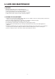 6. CARE AND MAINTENANCE 1. AIR FILTER Clean the air filter, which removes dust inside the room. It should be washed at least once every week during operation. 1. Remove the Air Filter from the front grill by pulling up. 2. Clean Air Filter with a vacuum cleaner or lukewarm, soapy water. 3. Shake it when clean to remove moisture completely. Replace it. 2. CLEANING THE AIR CONDITIONER 1. At least once a year, remove cabinet and thoroughly clean air conditioner.