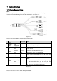 1 Device Structure 1.1 Device External Cable Note: The following figure is for reference only, which is used to know the function of cable port. You can refer to the following figure for cable information. See Figure 1-1. Figure 1-1 Please refer to the following sheet for detailed information. No. Port Name Function 1 AUDIO OUT 2 3 4 Connector Note Audio output port RCA Output audio signal to speaker and etc.