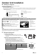 Outdoor Unit Installation 3. Flaring the pipe end. 1) Cut the pipe end with a pipe cutter. 2) Remove burrs with the cut surface facing downward so that the chips do not enter the pipe. 3) Put the flare nut on the pipe. 4) Flare the pipe. 5) Check that the flaring is properly made. (Cut exactly at right angles.) Remove burrs Flaring Set exactly at the position shown below. A Die Flare tool for R410A Conventional flare tool Clutch-type Clutch-type (Rigid-type) Wing-nut type (Imperial-type) A 0-0.