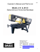 Operator’s Manual and Part’s List 6/02 Model J-10 & JH-10 Dake/Johnson Horizontal Bandsaw DAKE Division of JSJ 724 Robbins Road Grand Haven, MI 49417 Phone: 1-800-937-3253 616-842-7110 Fax: 1-800-846-3253 616-842-0859 E-mail: customerservice@dakecorp.com technicalservice@dakecorp.com Web: www.dakecorp.