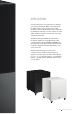 APPLICATION Placing a subwoofer is a very large part of creating the perfect audio reproduction. DALI recommends placing the SUB C-8 D in a corner or if that is not possible alongside a wall. This will maximise the bass output and the distribution around the room. The compact size of the SUB C-8 D makes placing it correctly much easier than many larger subwoofers. Available in Black Ash and White, the SUB C-8 D is the natural companion for many DALI speakers.