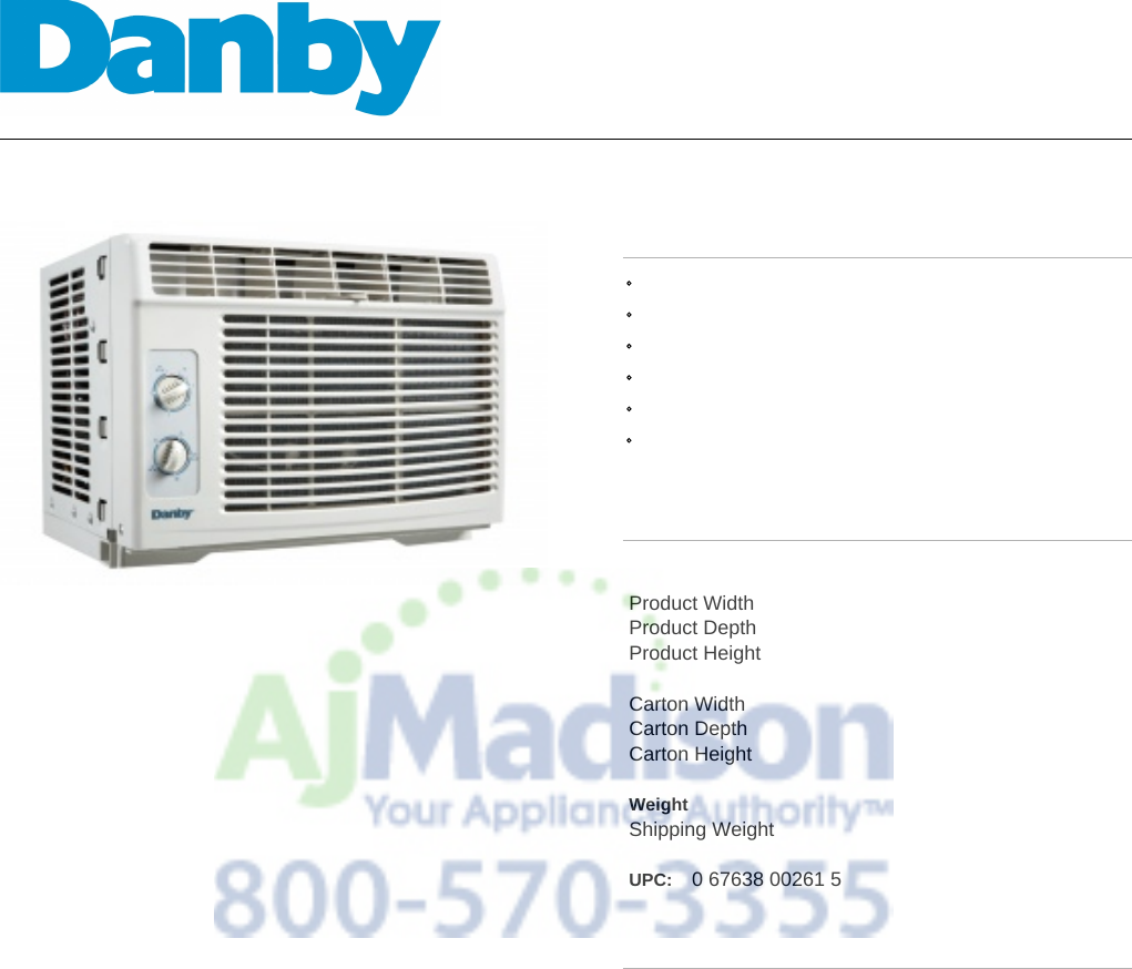 Danby Products Inc., PO Box 669, Findlay, OH USA, 45840 (419) 425-8627 FAX: (419) 425-8629