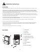 Installation Instructions LOCATION • Select a suitable location, making sure you have easy access to an electrical outlet (avoid the use of extension cords). • Make sure there are no obstructions restricting airflow through the front air intake grill. Maintain a minimum clearance of at least 20 cm (8”) between adjacent walls and the back of the unit, to allow for proper air circulation and maximum efficiency.