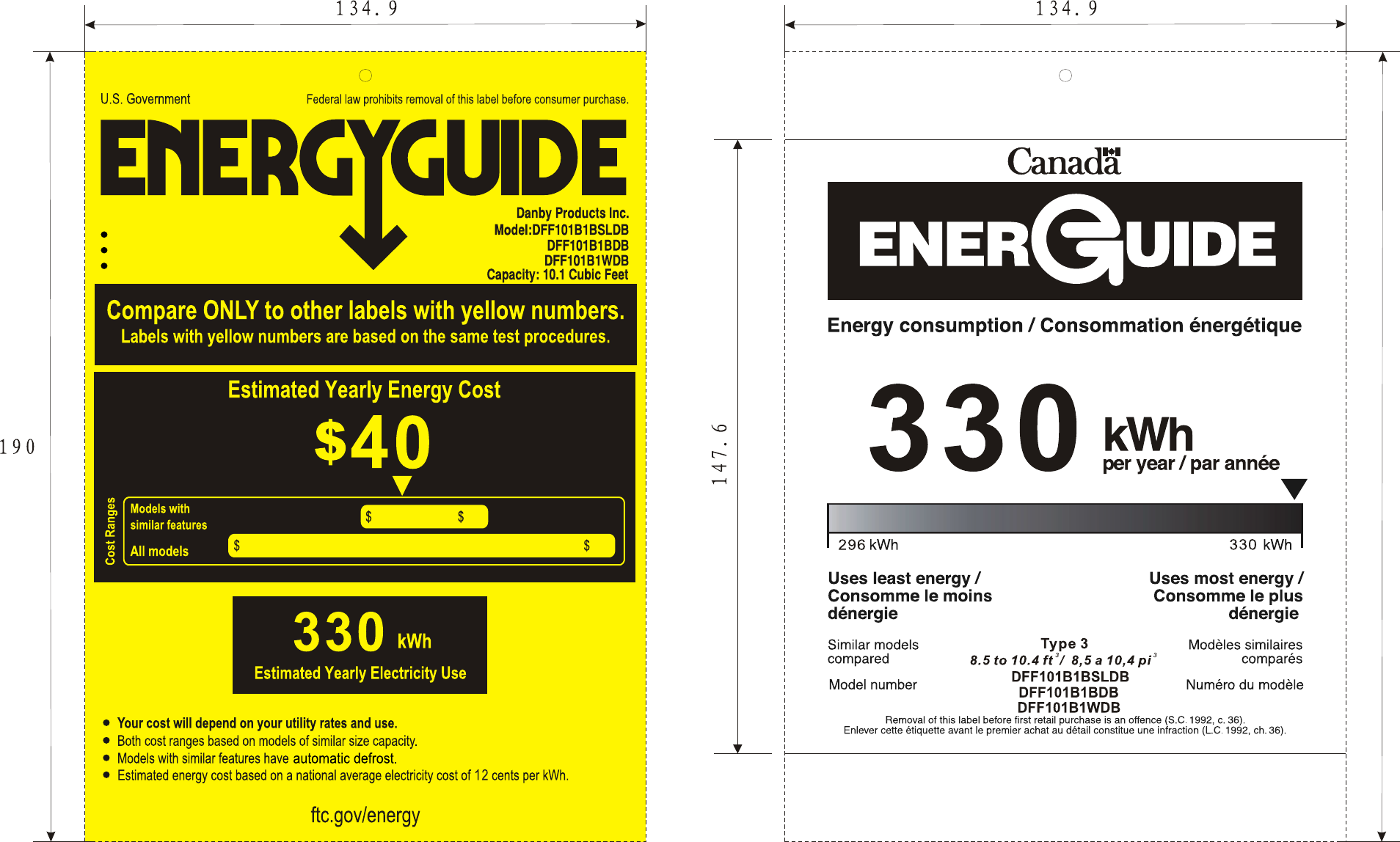DFF101B1BSLDB Refrigerator-Freezer Automatic Defrost Top-Mounted Freezer No Through-the- Door Ice Service 36 18 53 70 01.08.
