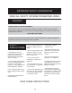 TABLE DES MATIÈRES Informations de sécurité importantes Précautions Instructions de mise à la terre 14 14 15 Instructions de fonctionnement Caractéristiques de votre Réfrigérateur de Vin Commandes de votre Réfrigérateur de Vin Réglage de la température Instruction de fonction Entreposage des vins Instruction des tabletts 16 16 17 17 17 18 18 Instructions d'installation 19 Renversement de la Porte 19 Soin et nettoyage 20 Conseils utiles Comment nettoyer l’intérieur Comment nettoyer l’extérieur 2