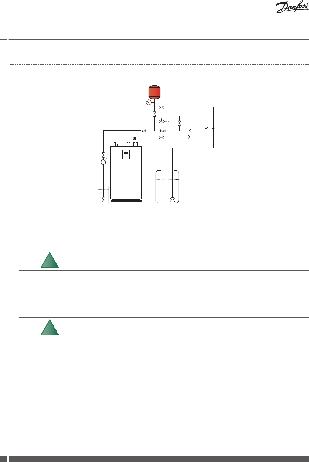 4. Use an external pump to fill the brine system. Connect the pressure side of the pump to the filler cock.