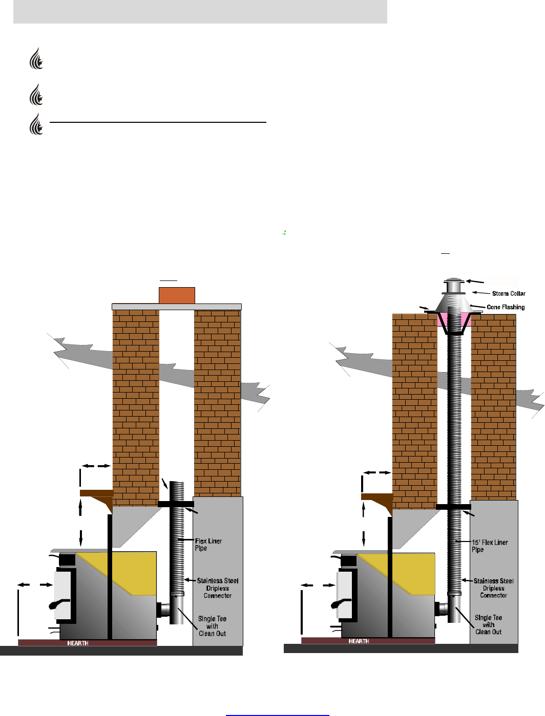 chimney, the pipe must extend a minimum of 18” above the damper.