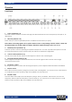 Compact 8.1 28. Channel 4 RCA line input connectors Use the connectors to connect a line level device. You can select the line input with the corresponding Mic/Line input selection (2) switch on the frontpanel. 29. Mic 4 balanced input connector Electronically balanced combo-type input for connecting low impedance microphones. You can select the MIC input with the corresponding Mic/Line input selection (2) switch on the frontpanel. 30.