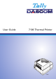 INTRODUCTION Thank you very much for purchasing Tally Dascom's compact direct thermal label & barcode printer Model 7106 that o ers high performance printing at 6 inches per second on 4.1 inch media at very low cost. Main Features This printer can be used for high-speed high-quality printing thanks to its thermal-transfer system that uses a line thermal printhead together with its 32 bit RISC CPU and its 'history control IC'.