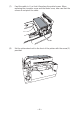 8. User maintenance If the platen of the printer becomes dirty, the cutter may perform defective cutting even if the auto cutter does not malfunction. Therefore, clean the platen regularly. (See the printer user’s manual) Remove the platen (1) Push the head open lever downwards to open the head unit and sensor arm. (2) Grasp the mounting device of the platen and lift it up as shown in the figure.