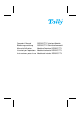 TALLY REPRESENTATIVES GERMANY Tally Computerdrucker GmbH Postfach 2969 D-89019 Ulm Deutschland Tel.: +49 7308 80 0 Fax: +49 7308 5903 http://www.Tally.de CANADA Tally Corp. 125 Traders Boulevard, 9 Missisauga, Ontario L4Z 2E5 Canada Phone: +1 905 8904646 Fax: +1 905 8904567 http://www.Tally.com ITALY Tally S.R.L. Via Borsini 6 I-20094 Corsico (MI) Italia Tel.: +39 02 48608 1 Fax: +39 02 48601 141 Mailbox: +39 02 48608 323 http://www.Tally.it FRANCE Tally S.A.