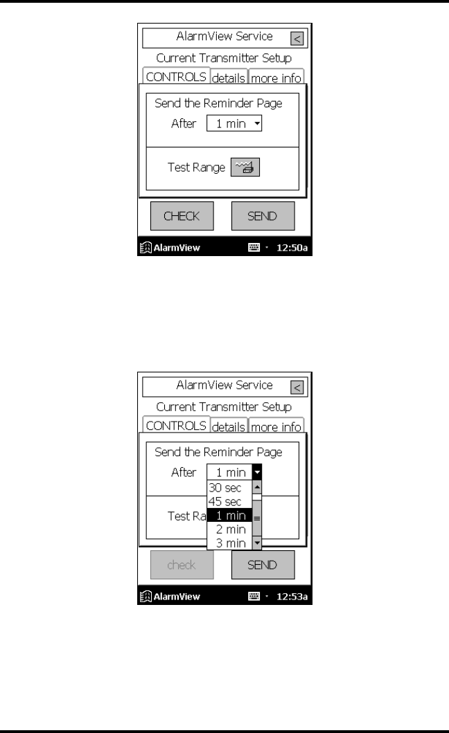 4. Tap the Down Arrow in Reminder Page field. A list of delay