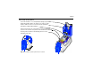 6 Replace the loaded ribbon cartridge in the printer. • Make sure both spindles rest in the black supports on the left side of the printer. • Make sure the ribbon cartridge handle rests in the supports on the right side of the printer. • Make sure to install the full, new spool toward the card tray of the printer. 7 Close the printer cover. Press down firmly to latch it.