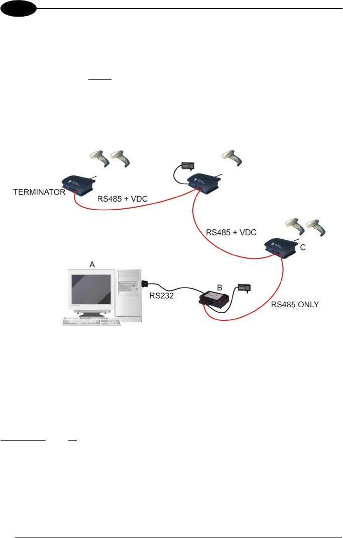 the RS485 network. In this way the base stations provide communications between a