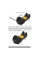 INSTALLATION Follow the given procedure for correct cable insertion: Align 3 2 5 1 6 Notch 4 7 Arrow Tab c Slip the cover over the cable. d Push the plastic boot into the rubber gasket. Take care that the tab on the plastic boot is aligned with the notch in the rubber gasket. e Push the plastic boot and gasket into the handle. Ensure that the “Front” marking on the plastic boot is facing out, with the arrow pointing towards the front of the scanner.