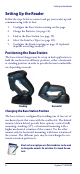 Setting Up the Reader Setting Up the Reader Follow the steps below to connect and get your reader up and communicating with its host. 1. 2. 3. 4. 5. Configure the Base Station starting on this page. Charge the Batteries (see page 14). Link to the Base Station (see page 19). Select the Interface Type (see page 20). Configure the Reader starting on page 32 (optional, depends on settings needed).
