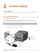 2 Printer Setup 2 2..1 1 IIn nttrro od du uccttiio on n This section explains how to connect your printer and load media (including ribbon, if equipped for thermal transfer operation). 2 2..2 2 C Co on nn ne eccttiin ng g tth he eP Prriin ntte err 2.2.1 Power Connections The printer is powered by an external auto-ranging power supply, which connects between the printer and an electrical outlet.