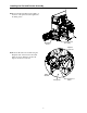 Peel off at least 20 inches of labels from the label backing. Route the label backing as shown below. Route the Label Backing back to and around the Rewind Hub. Insert the edge of the Label Backing into the Slot on the Rewind Hub. Then insert the Media Retainer, (supplied with the Rewind Option) into the Slots on the Rewind Hub and rotate the Rewind Hub to remove any slack in the Label Backing. Label Backing Slots Label Backing Rewind Hub Media Retainer Close the Peel Mechanism Front Cover.