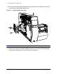 2 | Internal Rewind Installation Guide 20. If applicable, loosen and remove the thumbscrew securing the tear plate to the print mechanism and remove the tear plate. Figure: 2 - 17 Tear Plate 21. Install either the media rewind bracket or the peel plate. 22. Reinstall all other printer components in the reverse order as they were removed.