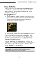 PRINTPAD 7900 USER'S GUIDE Using PrintPAD LEDs, Buttons, and Audio Indicators Charge LED Indicators LED Solid red Green Red flash-slow State of Charge Charge in progress. Charge completed. Battery is too cold. Battery is disconnected. Red flash-fast High temperature. Red/orange Battery voltage is very flash-slow low. Red/orange Battery is disconnected. flash-fast Orange flash- Charge timeout. slow Action Wait for green LED. None. Change environment. Connect battery. Change environment.