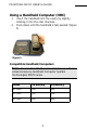 PRINTPAD MC70 USER'S GUIDE Using a Handheld Computer (HHC) 1. Insert the handheld into the cavity by slightly rotating it into the side channels. 2. Press down until the handheld is fully seated (Figure 5). Figure 5 Compatible Handheld Computers Note: The PrintPad MC70 is intended for use with UL Listed Accessory Handheld Computer Symbol Technologies MC70 series.