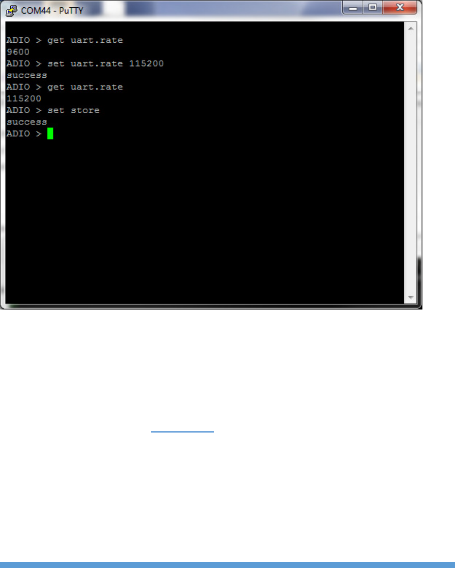 Step 2: On the Wireless Bridge information terminal (COM44 in this example) the set uart.rate 115200 is