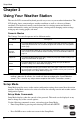 Setup Mode Chapter 3 Using Your Weather Station The console LCD screen and keyboard provide easy access to your weather information. The LCD display shows current and past weather conditions as well as a forecast of future conditions. The keyboard controls console functions for viewing current and historical weather information, setting and clearing alarms, viewing and/or changing station settings, setting up and viewing graphs, and more.