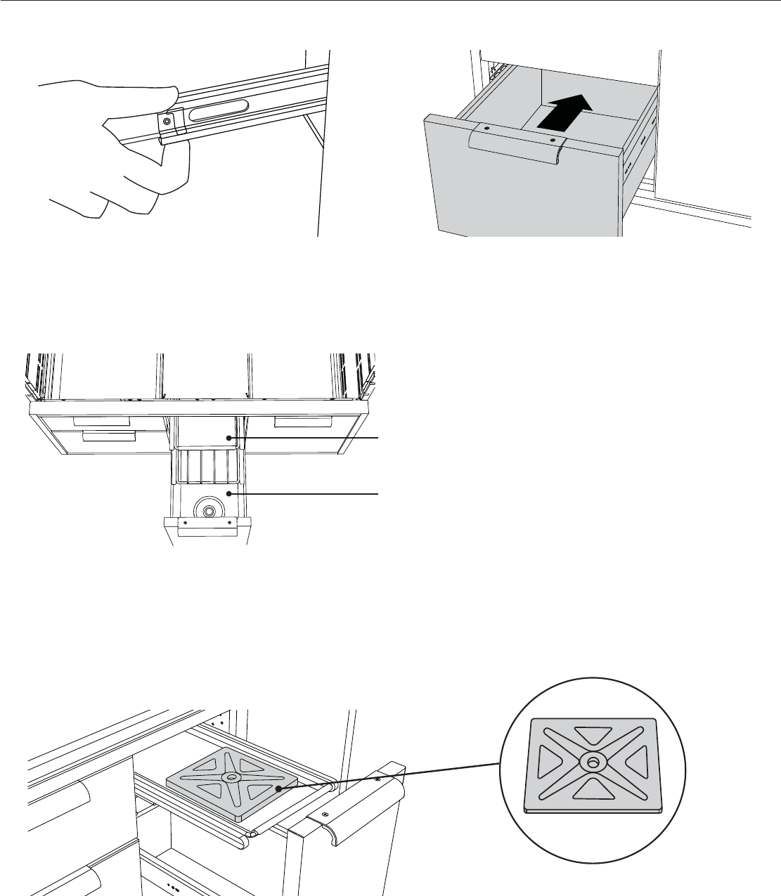 1 While holding the drawer up by the handle,