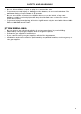 SAFETY AND WARNINGS To reduce the risk of fire, electrical shock, injury to persons, or damage when using the appliance, follow the important safety instructions listed below: hazard or other injury. ! WARNING! Explosion Hazard Failure to follow this advice may result in injury or death. • Do not store or use gasoline or other flammable vapors and liquids inside or in the vicinity of this or any other appliance.
