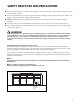 SAFETY PRACTICES AND PRECAUTIONS ■ Clean the ventilator hood and filters above the range or cooktop frequently so grease from cooking vapors does not accumulate on them. ■ Turn the ventilator OFF in case of fire or when intentionally “flaming” liquor or other spirits on the cooktop. The blower, if in operation, could unsafely spread the flames. ■ DO NOT obstruct the flow of combustion or ventilation air to the appliance. Be sure a fresh air supply is available.
